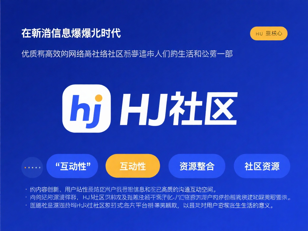 在如今信息爆炸的时代,优质且高效的网络社区逐渐成为人们生活中不可或缺的一部分。hj社区,作为一个新兴的网络交流平台,以"互动性"和"资源整合"为两大核心,致力于为用户提供一个高质量的沟通互动空间。通过内容创新、用户粘性提升以及社区资源共享,hj社区已成为许多人寻找信息和建立联系的首选。接下来,我们将深度解析hj社区如何从众多平台中脱颖而出,以及它对用户实际生活的意义。